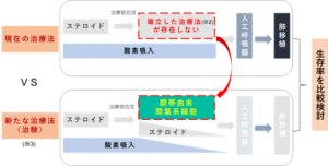 ※2 現行の治療は、ステロイドに加えて免疫抑制剤を追加する治療や未承認薬が使われています。